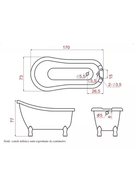 Avand o linie retro, modelul Venus cu spatar inalt este alegerea perfecta pentru o baie cu design clasic. Este o piesă de mobilier in sine, care nu necesita infrumusetare sau accesorizare.Cada Venus este de tip insula (Freestanding = se poate monta in mijlocul incaperii). Picioarele din bronz cu finisaj argintiu, care ofera o eleganta aparte cazii, se pot inlocui cu unele aurii (vezi elemente si/sau variante); varianta pe auriu nu este inclusa in pretul cazii. Suprafetele cazii sunt din acryl sanitar, material rezistent si foarte usor de intretinut (nu se pateaza, nu-si schimba culoarea si impiedica acumularea impuritatilor). Cada are o structura de tip sandwich, compusa din cuva exterioara (acryl 3-4mm), izolator 15-18mm, cuva interioara (acryl 4-5mm). Aceasta structura confera masivitate cazii. Materialul izolator este prezent la baza si la coama cazii. Pe laterala izolarea intre cele 2 straturi de acryl se realizeaza cu ajutorul a 2 foite de aluminiu lipite de partea invizibila a stratului de acryl. Rolul panourilor frontale de la alte cazi este preluat in cazul Florida de cuva exterioara din acryl. Datorita structurii masive, cazile Florida nu necesita nici un fel de structura metalica. Picioarele din bronz cu finisaj argintiu si instalatia de cada (tevi metal, preaplin, ventil click-clack cromate) se livreaza impreuna cu cada si sunt incluse in pret. Bateria se comanda separat.