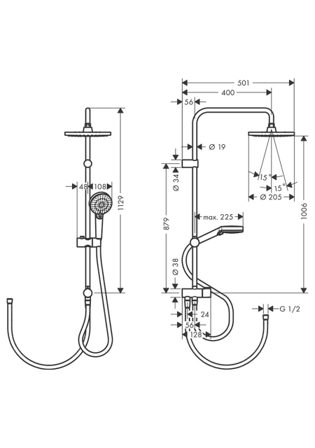 debitul maxim al apei la para de dus la 3 bari: 15,2 l/min