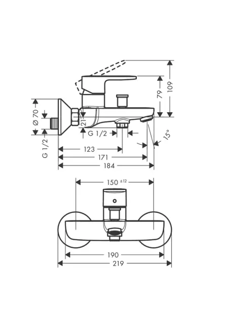 Baterie cada dus monocomanda, cu montaj pe perete, cartus ceramic, cu limitator de temperatura reglabil, divertor cu revenire automata, cu amortizor de zgomot, cu pulverizare normala, cu debit pipa la 3 bar de 22,5 l/min si debit dus la 3 bar de 15,7 l/min, presiune minima de lucru de 1 bar iar presiune maxima de 10 bari, compatibila cu incalzitoare de apa cu flux continuu, conexiuni in forma de S, avand distanta centrala de 150 ± 12 mm. Tehnologii Hansgrohe: Air Power - consum redus de apa prin mixare cu aer. Finisaj produsului este negru mat (matt black). Garantie 60 de luni. Produs fabricat de Hansgrohe.