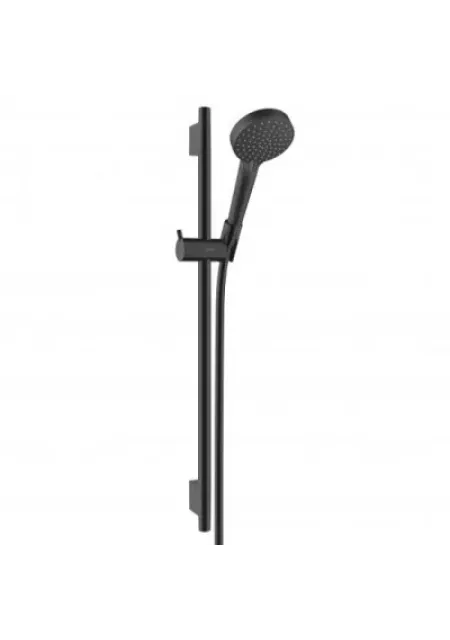 Setul de dus este formata din: Bara de dus cu lungimea de 718 mm, diametrul de 22 mm si distanta intre gauri de 625 mm, cu suporturi de perete din plastic; Furtun de dus; Para de dus mobila cu dimensiunea de 100 mm, avand 2 tipuri de jet Rain, IntenseRain, cu un debit maxim la 3 bari de 9,7 l / min, cu reglarea tipului de jet prin rotirea discului de pulverizare si a unghiul de înclinare al suportului de dus cu 45 °; cu setul de fixare inclus. Finisajul produsului este negru mat (matt black). Garantie 60 de luni. Produs fabricat de Hansgrohe.