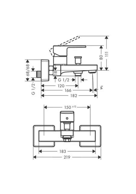 Baterie cada dus monocomanda, cu montaj pe perete, cu proiectie 166 mm, avand cartus ceramic, cu limitator de temperatura reglabil, divertor cu revenire automata, cu amortizor de zgomot, cu pulverizare normala, cu debit pipa la 3 bar de 22,5 l/min si debit dus la 3 bar de 15,7 l/min, presiune minima de lucru de 1 bar iar presiune maxima de 10 bari, compatibila cu incalzitoare de apa cu flux continuu, conexiuni in forma de S, avand distanta centrala de 150 ± 12 mm si dimensiunea conexiunii DN15. Tehnologii Hansgrohe: Air Power - consum redus de apa prin mixare cu aer. Finisaj produsului este crom lucios. Garantie 60 de luni. Produs fabricat de Hansgrohe.