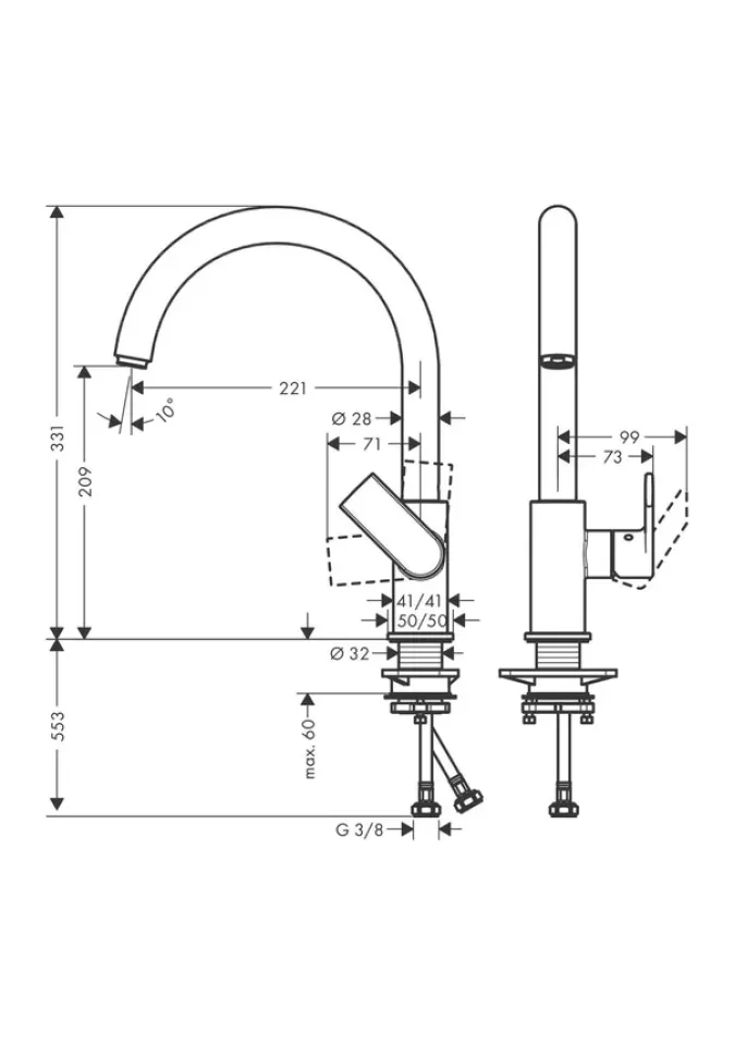 Duza pivotanta poate fi reglata in 2 trepte 120° sau 360°