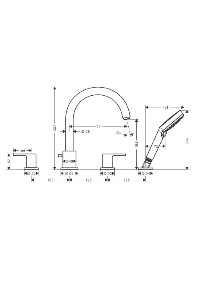 Baterie cada dus cu montaj pe cada; cu 2 functii; cu proiectie 211 mm; cu pulverizare normala pentru umplere cada si 2 tipuri de jet pentru para de dus Rain, IntenseRain; cu un debit maxim la 3 bari de 25 l / min, cu un debit pentru gura de umplere cada la 3 bari de 25 l / min si un debit pentru para de dus la 3 bari de 17 l / min; lungimea furtunului de dus este de 1.60 m; cu supapa ceramica cald - rece 90 °; cu supapa anti-retur; , compatibila cu incalzitoare de apa cu flux continuu; cu conexiuni la apa calda-apa rece de G ⅜, avand imensiunea conexiunii DN15. Necesita set pentru montare baterie de baie incastrate 13244180, care se comanda separat. Finisaj produsului este negru mat (matt black). Garantie 60 de luni. Produs fabricat de Hansgrohe.