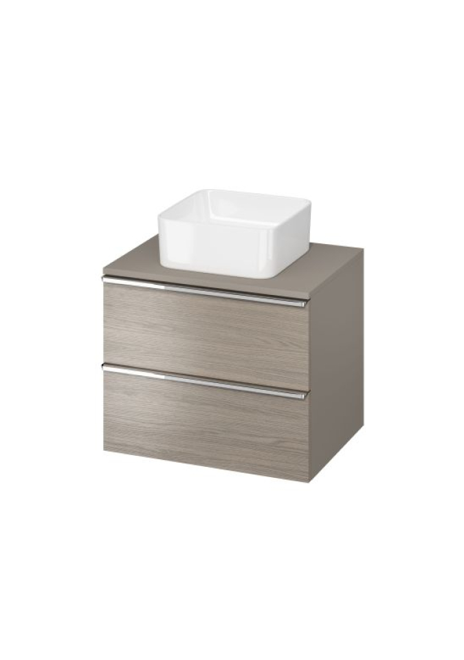 Mobilierul de baie din colecția concept VIRGO este o combinație de funcționalitate, eleganță și modernitate. Dulapurile din această serie au mânere din metal cromat care se vor integra perfect cu restul mobilierului de baie. Dulapurile de top VIRGO sunt realizate din plăci aglomerate texturate cu lemn de stejar gri (fronturi), cu un finisaj mat pe părțile laterale ale corpului și pe partea superioară. Cele două sertare practice sunt echipate cu un sistem de închidere moale. În interiorul sertarului superior există o decupaj pentru sifon cu capacul acestuia. Suprafața fundului sertarelor este acoperită cu o structură fină din in gri. Mobilierul este vândut asamblat.