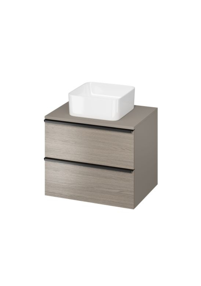 Mobilierul de baie din colecția VIRGO concept combină funcționalitatea, eleganța și modernitatea. Dulapurile din această gamă sunt prevăzute cu mânere metalice de culoare neagră mată, care se vor asorta perfect cu restul mobilierului de baie. Dulapurile de blat VIRGO sunt realizate din plăci aglomerate cu textură de lemn, în culoarea stejar gri (fronturi), cu un finisaj mat pe părțile laterale ale dulapului și pe blat. Cele două sertare practice sunt echipate cu un sistem de închidere soft-close. În interiorul sertarului superior există o decupaj pentru sifonul cu capacul său. Suprafața fundului sertarelor este acoperită cu o structură fină din in gri. Mobilierul este vândut ca fiind asamblat.