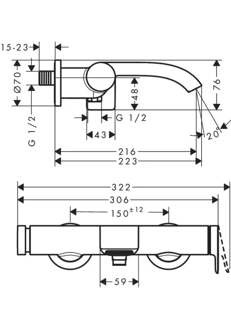 - buton select pentru diverter cu schimbare intre pipa cada si dus de mana