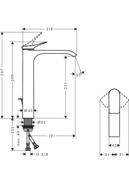 VIVENIS, NEGRU MAT, BATERIE LAVOAR INALTA 250 FARA VENTIL, 75042670