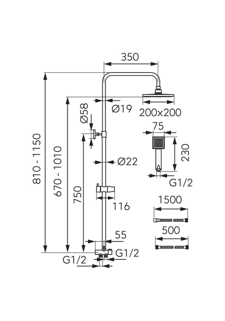 WIZARD SQUARE, CROM, SET DE DUS CU BARA DUS, SUPORT CULISANT, DUS FIX SI PARA DUS MOBILA, NP46