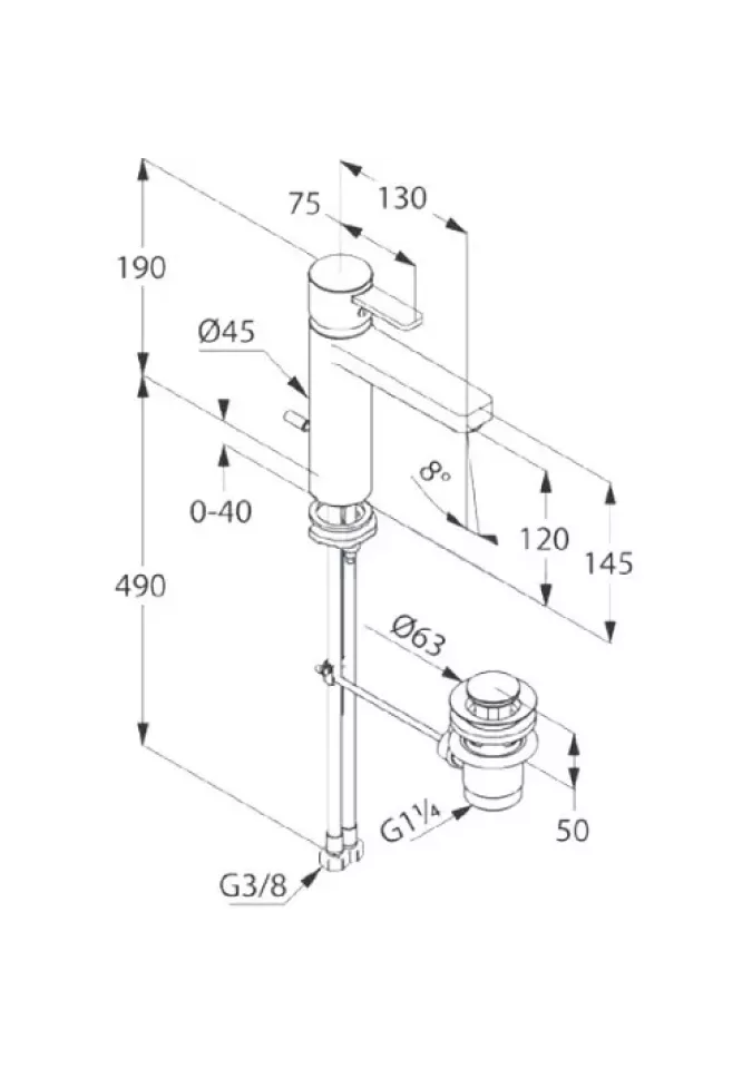 Baterie monocomanda lavoar, maner plin, debit 6l/min la 3 bari, perlator s-pointer PCA M 24 x 1, cartus ceramic cu limitator de apa fierbinte, ventil scurgere pop-up G 1 1/4, racorduri flexibile G 3/8 si sistem de montare rapida, lungime pana la pipa 120 mm. Garantie 60 de luni. Produs fabricat de Kludi.