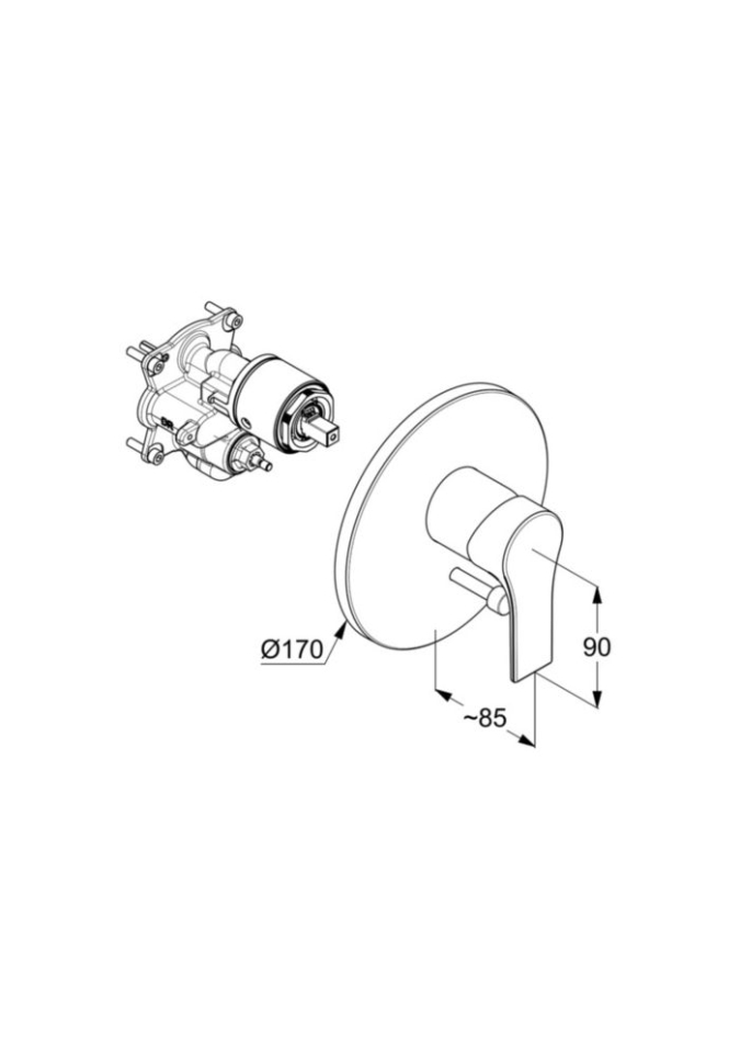 | - baterie monocomandă încastrată de cadă-duș - set finisare cu unitate funcțională - mâner plin - comutator automat cadă/duș - cartuș ceramic cu limitator de apă fierbinte - clasă de debit D/C |