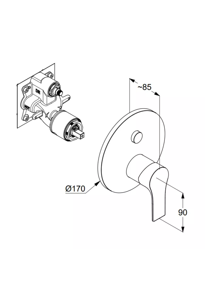 baterie monocomandă cadă-duş, încastrată