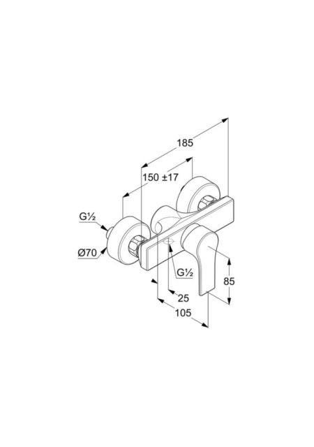 - baterie de dus DN 15 - mâner plin - montaj pe perete - debit 28 l/min la 3 bar - cartuș ceramic cu limitator de apă fierbinte - protecție împotriva fluctuațiilor de presiune a apei - racord duș G 1/2 - excentrice tip S G 1/2 x G 3/4