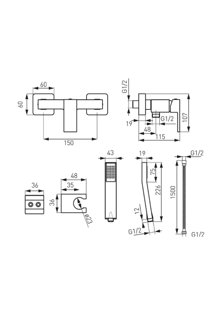 ZICCO, CROM, BATERIE DUS, MONTAJ PE PERETE, CU SET DE DUS, BZI77