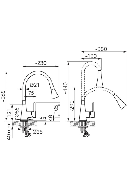 distanta reglabila a pipei: 18 cm - 38 cm