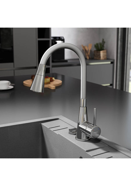 ZUMBA II, GRI-ARGINTIU, BATERIE STATIVA BUCATARIE CU PIPA FLEXIBILA, BZA42S