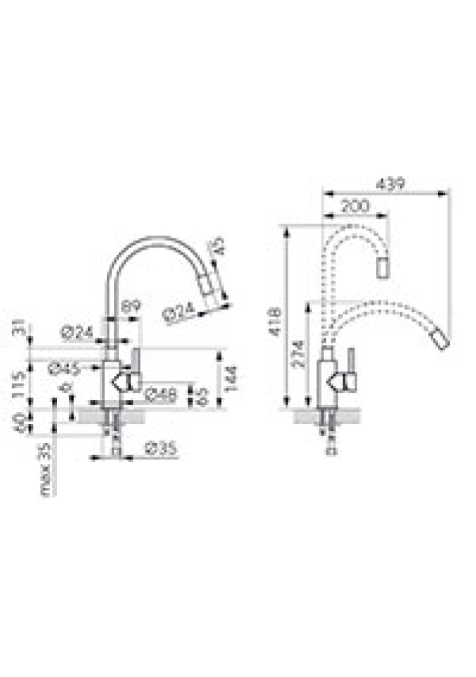 ZUMBA INOX, GRI, BATERIE STATIVA BUCATARIE CU PIPA FLEXIBILA, BZA4SSS