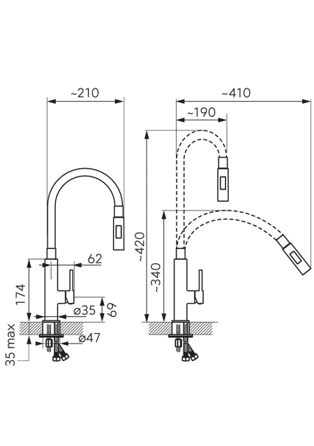 inaltime reglabila a pipei: 34 cm - 42 cm