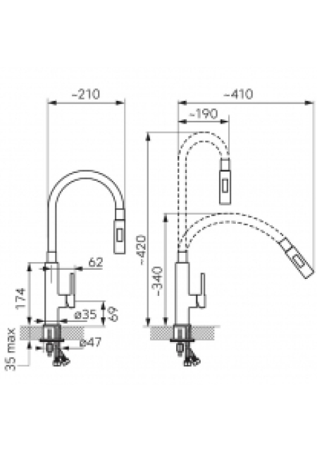 inaltime reglabila a pipei: 34 cm - 42 cm